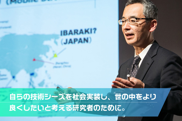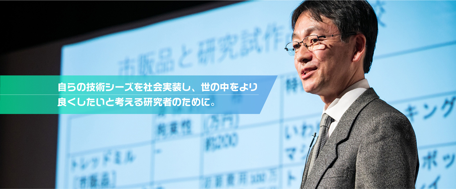 本プログラムは、自らの技術シーズを社会実装し、世の中をよりよくしたいと考える研究者のために生まれました。技術シーズの社会実装は、研究者1人ではなし得ません。事業計画立案、企業との共同研究、法人設立、資金調達など各局面において、さまざまな連携・協力が必要となります。
